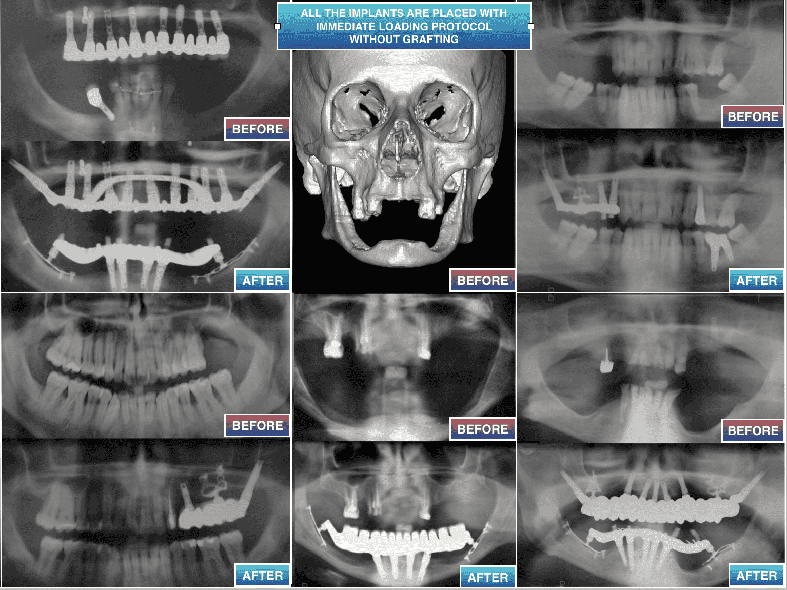 Desde hace más de 30 años hemos practicado procedimientos de cirugía de implantes dentales, enseñados en la Universidad, sin injerto, cuando no pueden aplicarse o cuando han fallado.